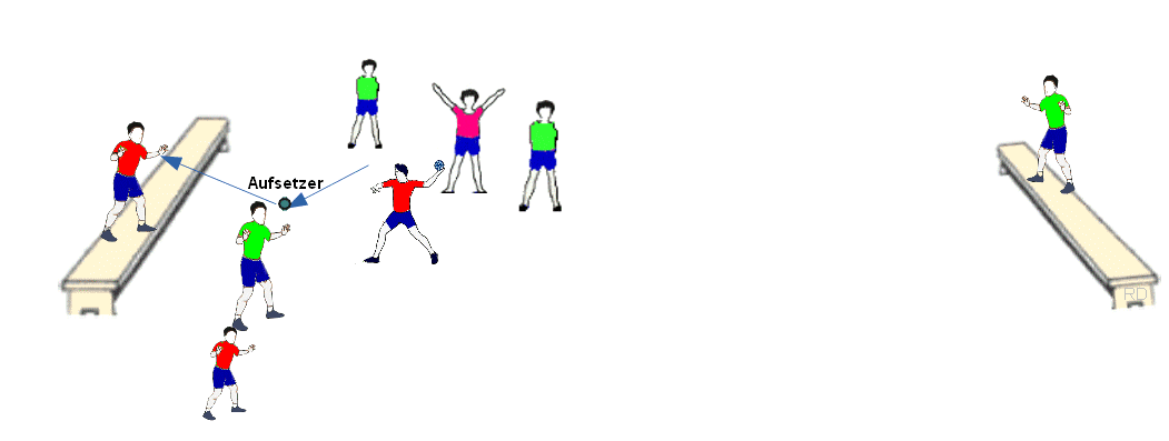 oder zwei auf der Bank befindliche Schüler müssen angespielt