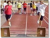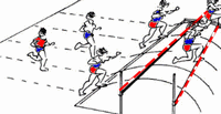 Laufsprünge Hoch-Weitsprünge über schräg gespannte Seile/Baubänder.