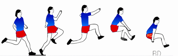 Die Flugphase ergibt sich "von selbst".Das Schwungbein bleibt nach dem Absprung vorn, das Sprungbein wird schnell herangezogen.