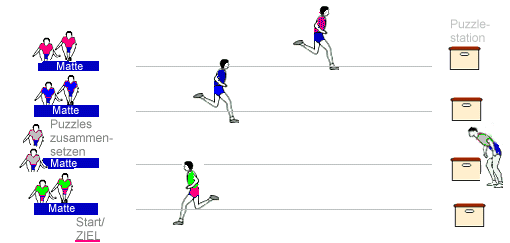 c) die Gruppe entscheidet selbstDer nächste Läufer darf erst starten, wenn das Puzzleteil auf der Matte ist.