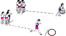 (Lauf und Wurf)Der Lauf (Sprint oder Ausdauerlauf) wird mit Wurfaufgaben verbunden. Ein Beispiel