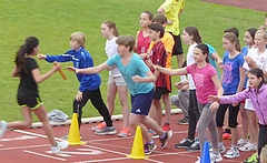 . Laufen, Springen, Werfen - diese Grundelemente können auf vielfältige Weise auch in Staffelformen kombiniert werden. Dabei sollten grundlegende