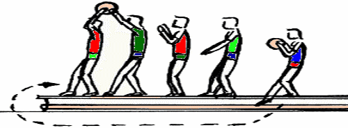 Der Wechsel erfolgt im Wechselraum.Rundenstaffel
