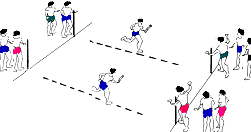 Kombinationen von Laufen, Werfen und Springen können ebenso einbezogen (Hindernisstaffeln) werden wie