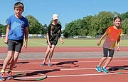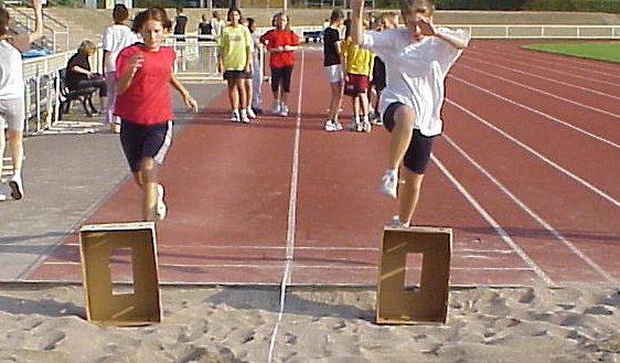 Durch die Abstimmung mit einem oder mehreren Partnern können Sprungvarianten erprobt und gestaltet werden. Die Gestaltung einer eigenen kleinen Sprungchoreografie ist eine interressante zusätzliche Aufgabenstellung (evtl. auch in Verbindung mit Sprungseilen, Reifen etc.).
