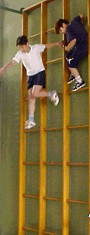 Ob auch mal mit verbundenen Augen gesprungen wird (Abb.4) muss je nach Lerngruppe entschieden werden.