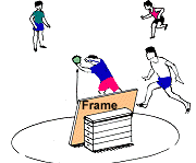 Die ballbesitzende Mannschaft muss versuchen, den Ball so an das Frame zu werfen, dass kein Spieler der gegnerischen Mannschaft den Ball fangen kann. Werfer und Fänger dürfen die Torkreise nicht betreten. Der zurückprallende Ball darf nicht innerhalb des Torkreises aufkommen. Beide Frames dürfen von beiden Mannschaften als Prellfläche benutzt werden, keine Mannschaft hat also ein eigenes Tor!