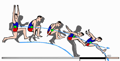 Arm-und Beinbewegungen während der Flugphase dienen der Erhaltung des Gleichgewichts und der Vorbereitung der Landung. Die Flugbahn des Körperschwerpunktes (KSP) kann während des Flugs nicht mehr beeinflusst werden.