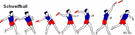 DannBogenspannung und Abwurf (Stemmschritt des linken gestreckten Beins).