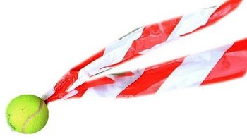 Schweifbälle kann man z. B. aus Tennisbällen und Baustellenband herstellen. Dafür wird der Tennisball ca. einen Zentimeter aufgeschnitten und das mit einem starken Knoten versehene Baustellenband hineingedrückt.